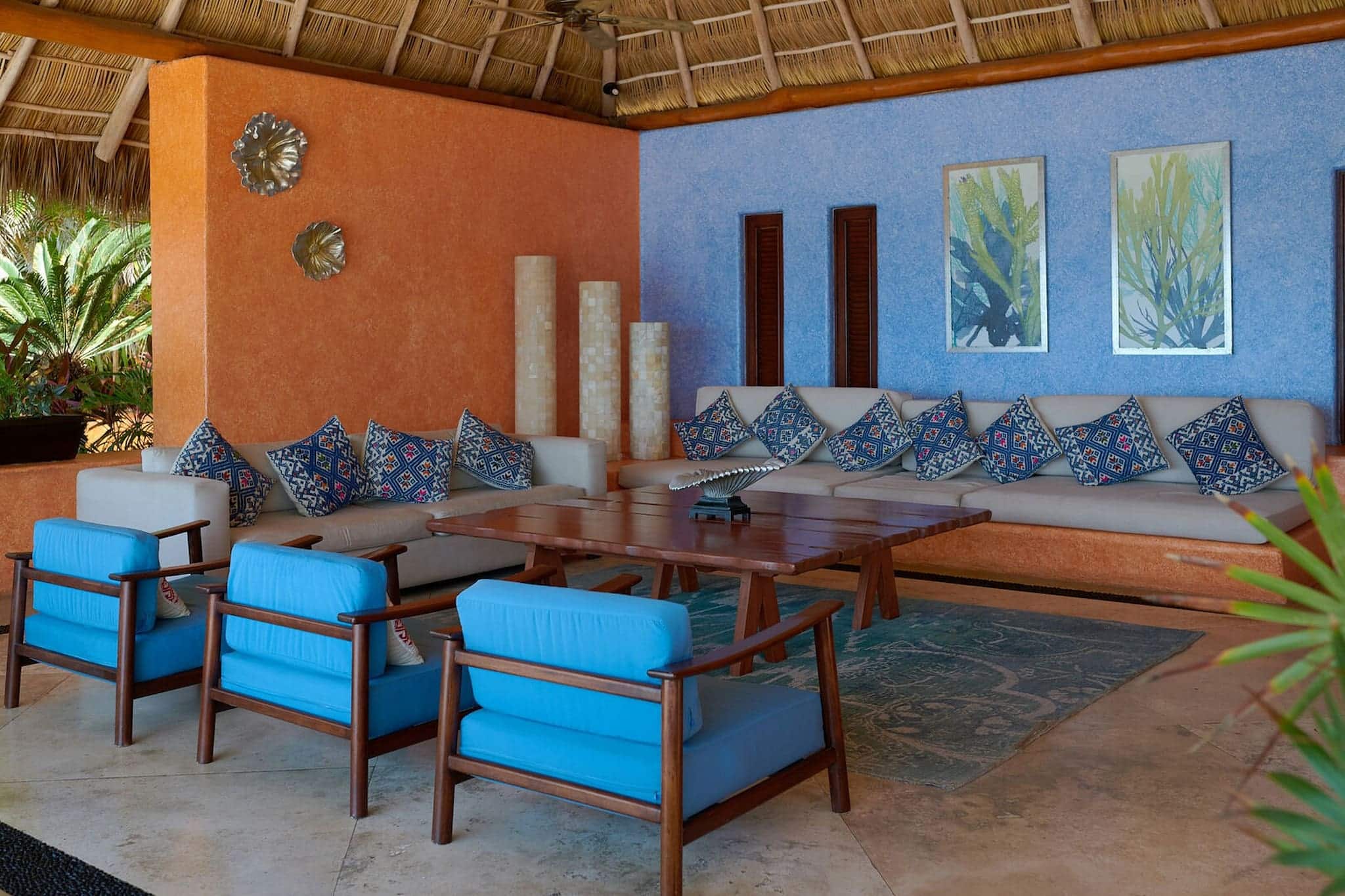 This five-bedroom home is decorated with impeccable taste. It is colorful and rustic still elegant and luxurious; a unique combination that makes this house embrace you in style and great commodities. Everything is bright and open and connects all its spaces perfectly to flow freely in living areas and to provide the privacy everybody needs when it is time to rest. The kitchen is fully equipped, very large and furnished with high-end stainless-steel appliances. You will enjoy endless hours in your crystal-clear pool and jacuzzi area, looking at the endless ocean, relaxing and just taking all the splendor in. You can also enjoy al fresco dinning by the pool or breakfast with a view in the mornings. This is the perfect beach home.