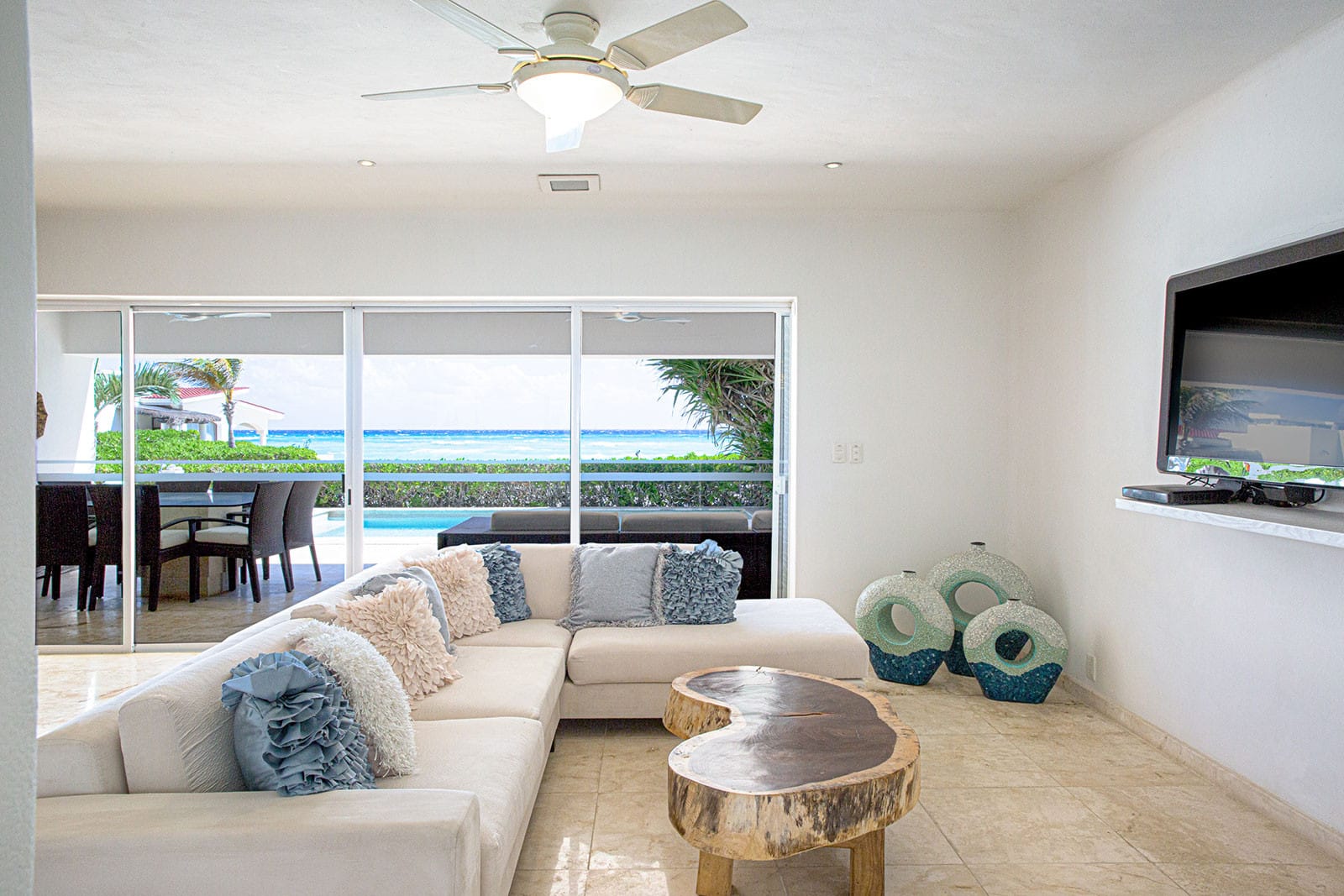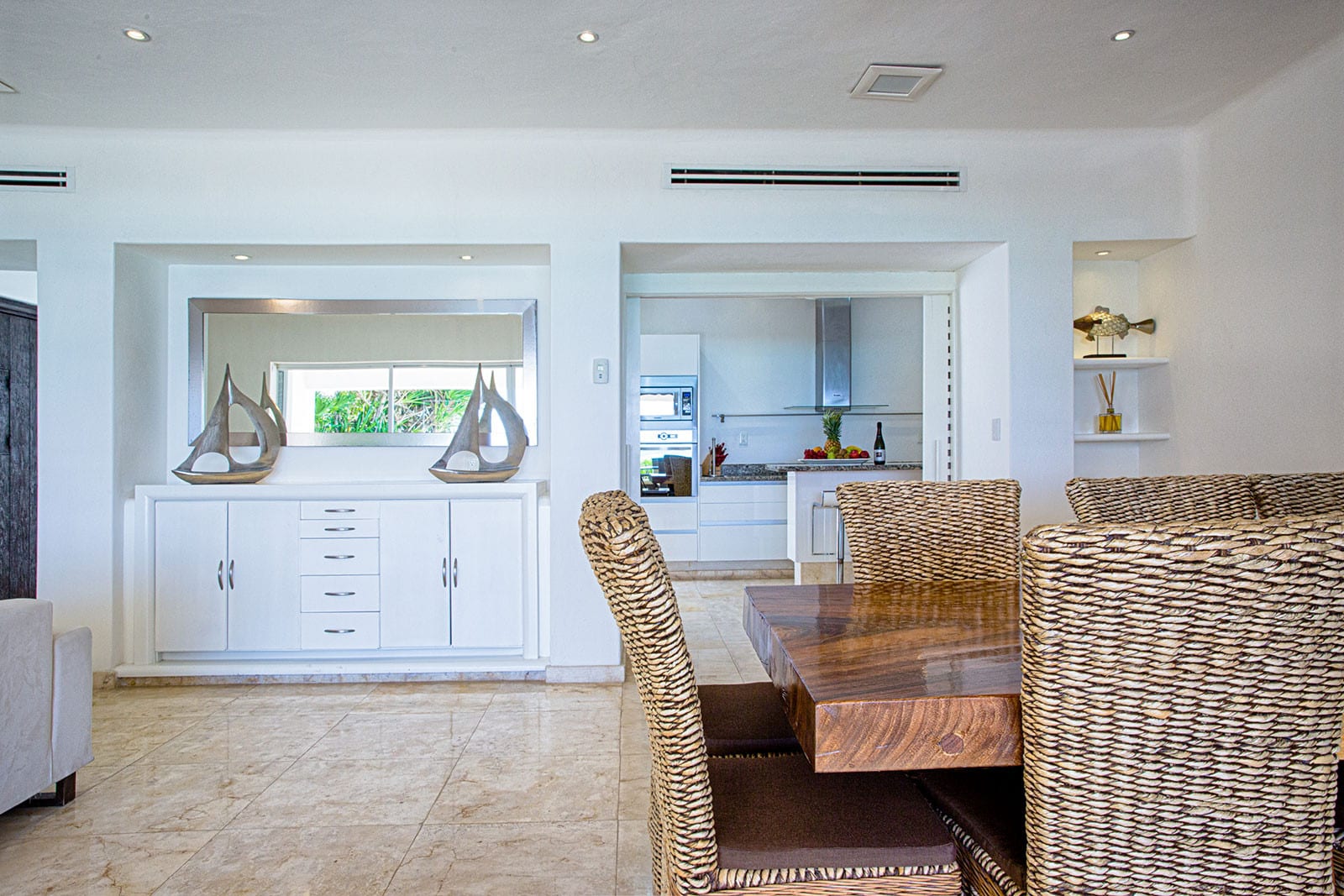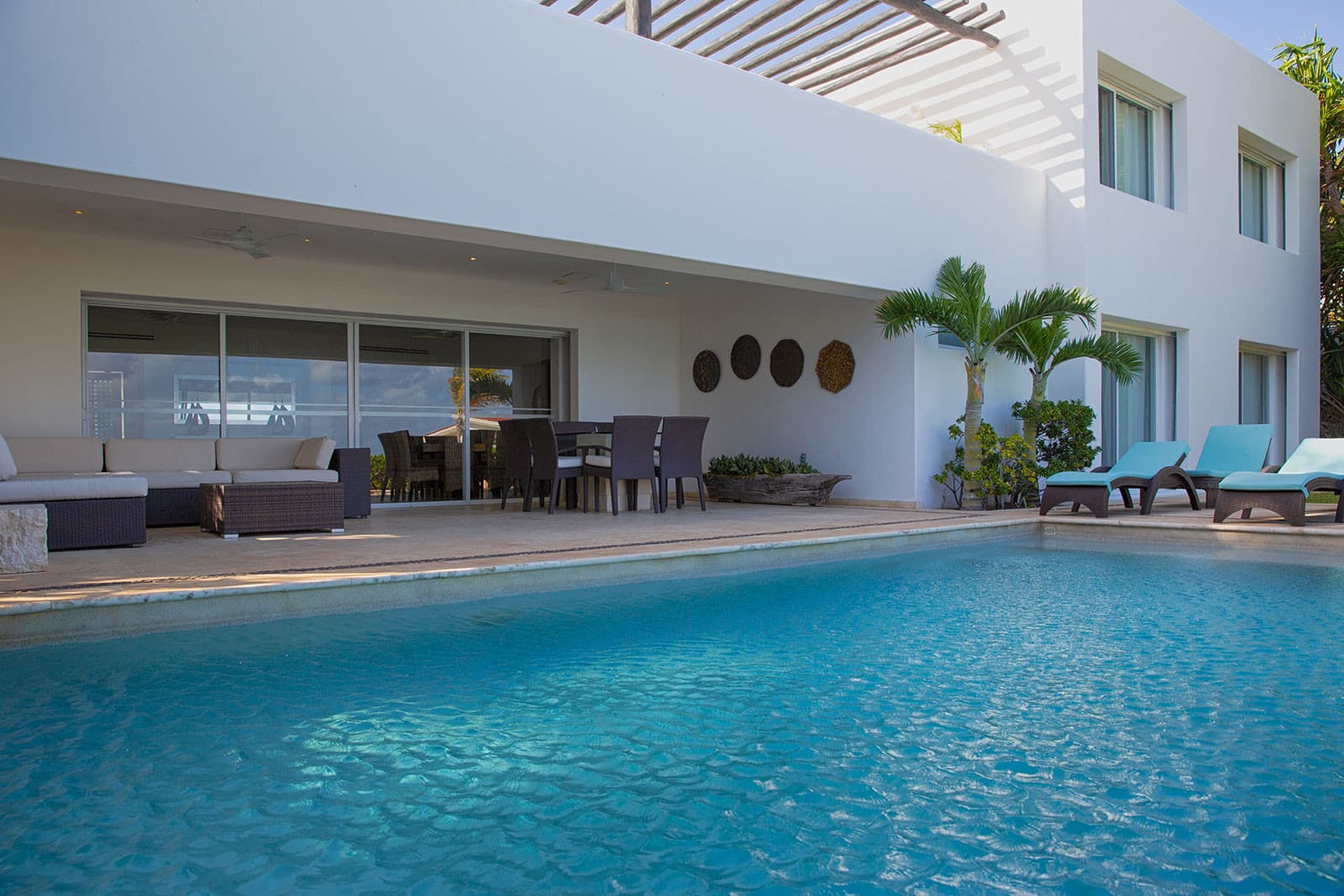 This recently renovated, classy villa offers an unforgettable vacation experience near Playacar beach, surrounded by tropical flora. It features panoramic ocean views from the terrace and bedrooms, as well as a beautifully positioned swimming pool. Accommodating up to 16 guests, the house includes six spacious bedrooms and a fully-equipped kitchen. Enjoy al-fresco dining in the Caribbean breeze or relax on the rooftop terrace with views of Cozumel’s lights. Just a 5-minute walk from Quinta Avenida and near tennis courts and beach activities, this spacious beach house is ideal for both relaxation and adventure.