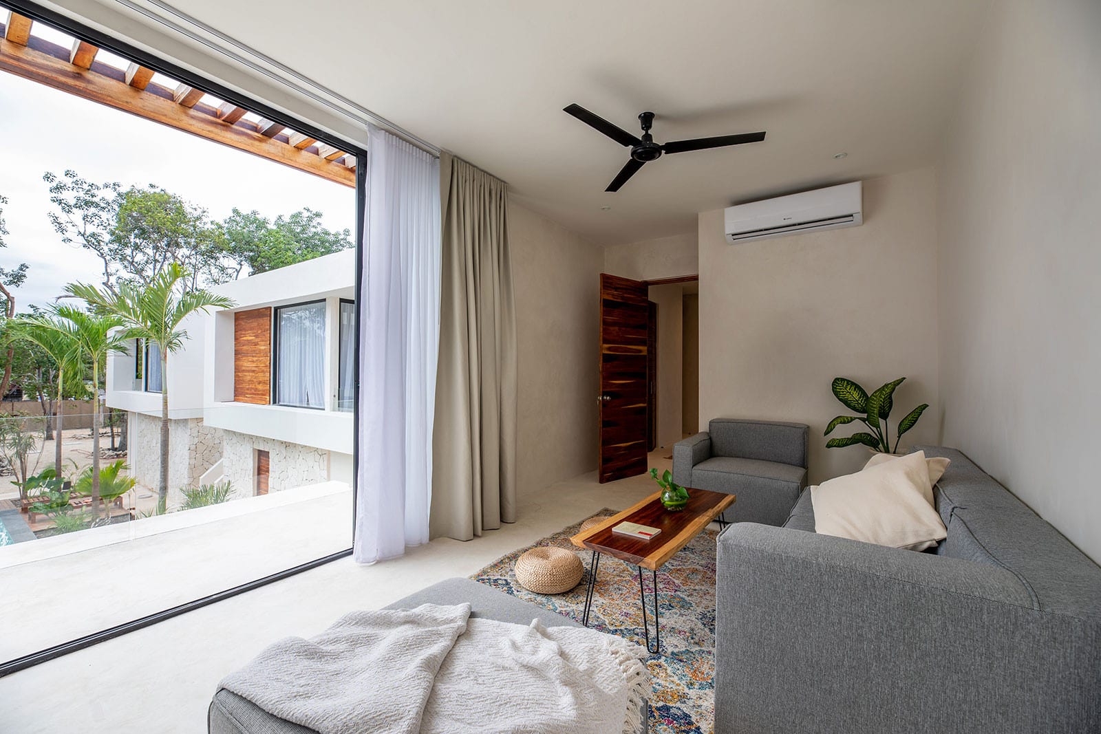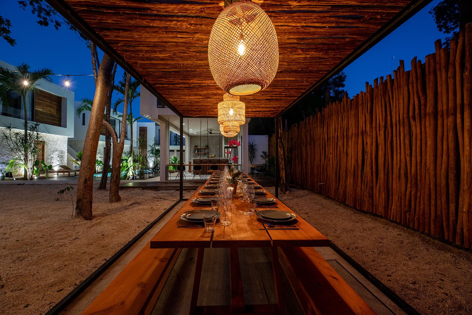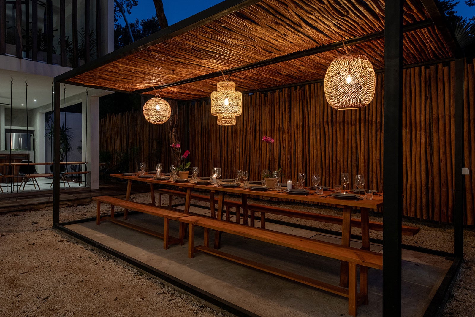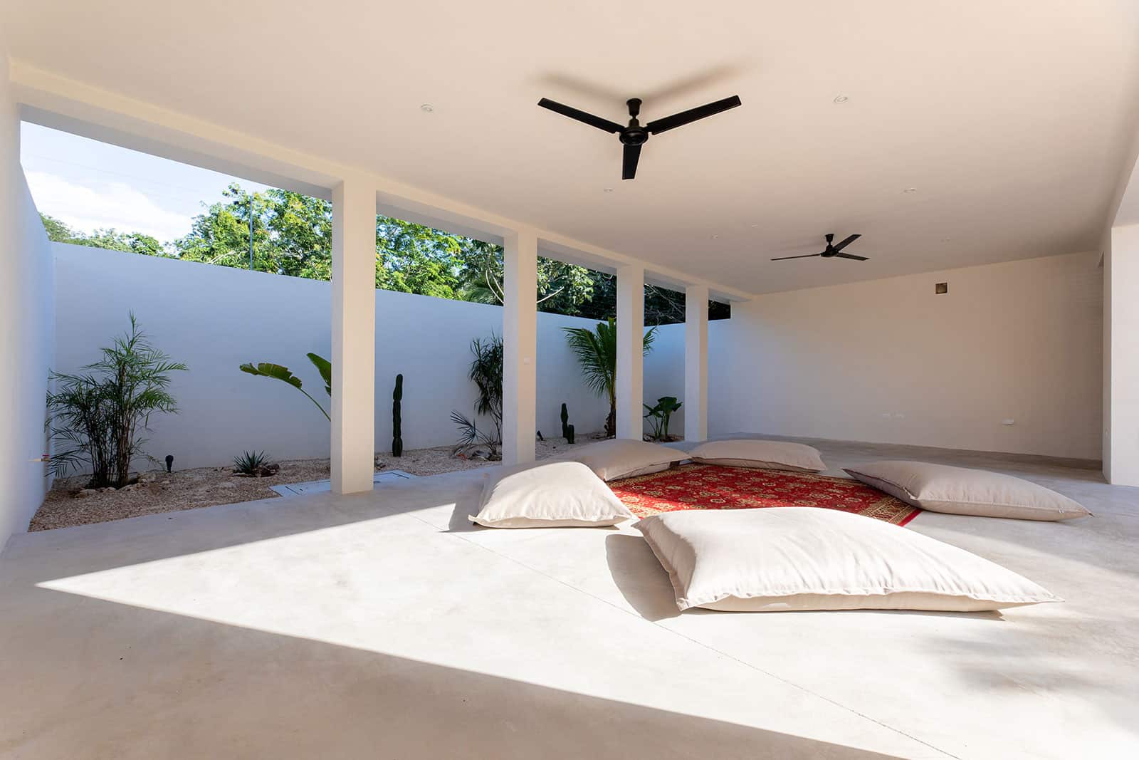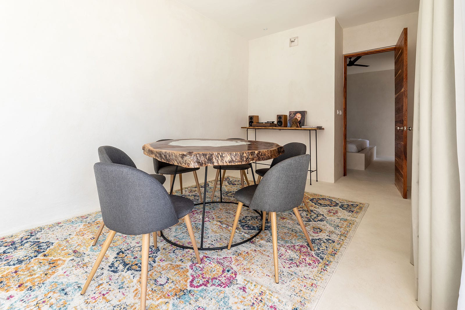 The hacienda blends luxury with natural elements, offering peace and balance. Relax in rooms with air conditioning, private bathrooms, and terraces. Enjoy the cozy fireplace, play music through our Bluetooth sound system, and access the best beach clubs in town through our partnerships.