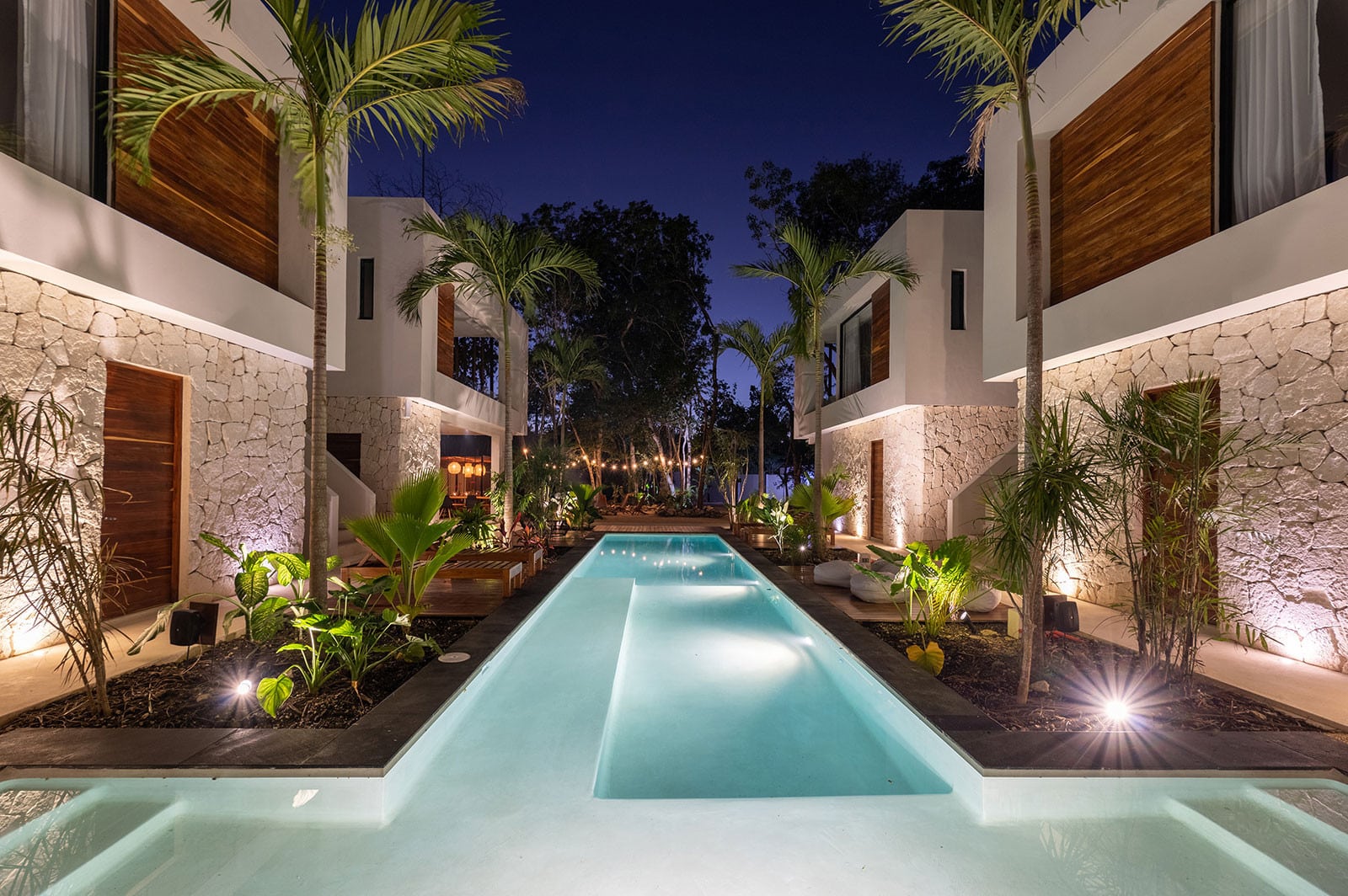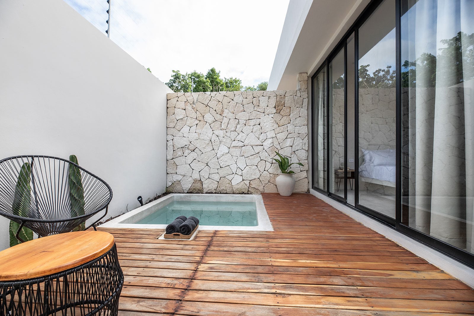 Our hacienda is designed for families, friends, and groups to gather and create unforgettable memories. With a modern U-shaped layout, each room offers private access, a bathroom, and many with their own pools.