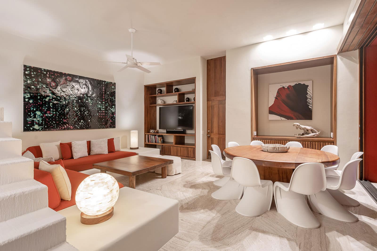 Master Suite: King size bed, Sofa bed, Air conditioning, Apple TV, Ceiling fan, Comforters/down duvets/feather pillows, Ensuite bathroom with indoor and 2 outdoor showers, Hairdryer, Large private deck with seating area, Loccitane signature toiletries, Luggage Racks, Mini bar, Nespresso machine, Ocean view sitting area, Oversized towels, Private terrace with seating area, Safety box, Sky System & Smart TV, Soft terry cloth bathrobes, Sunken tub on private deck outside overlooking ocean, Tea station, Vanity makeup/shaving mirror, Wifi access