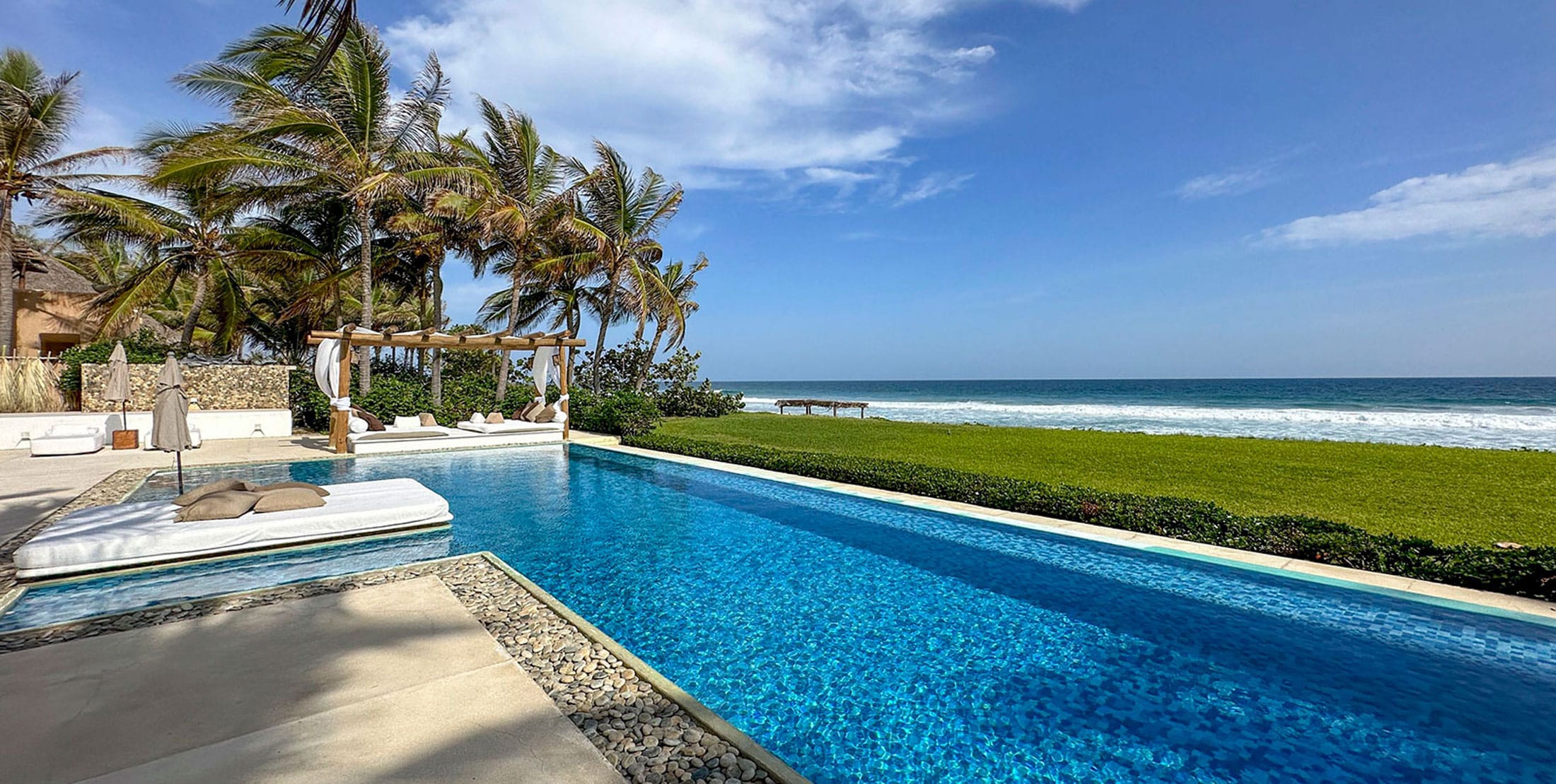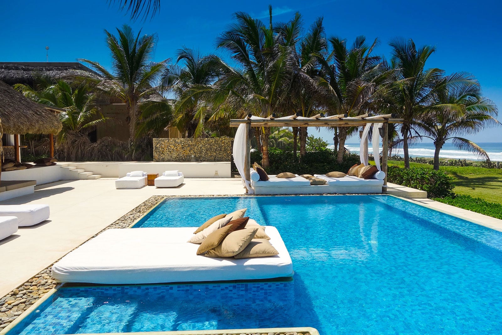The house in Puerto Escondido has 5 bedrooms and has capacity for 14 people.