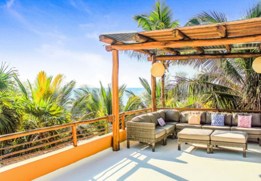 Nestled in the jungle near Tulum, this villa combines privacy and convenience, just minutes from beaches, dining, and shops. With Zen-inspired design and Balinese and Moroccan accents, it offers seamless indoor-outdoor living. The main floor features a gourmet kitchen, dining area, cozy lounge, and an en-suite room with garden views. Upstairs, a penthouse bungalow includes […]